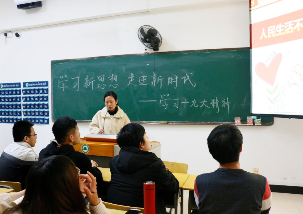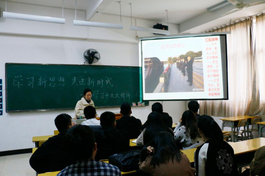 为贯彻落实习近平新时代中国特色社会主义思想和党的十九大精神,提高我支部入党积极分子的党性修养,为祖国培育优秀人才。我系学生第一党支部书记陈静老师于4月16日下午14:40在实训四606开展了“学习新思想不忘初心,走进新时代牢记使命――学习党的十九大精神”主题党课,参与此次党课的是第一党支部的入党积极分子。