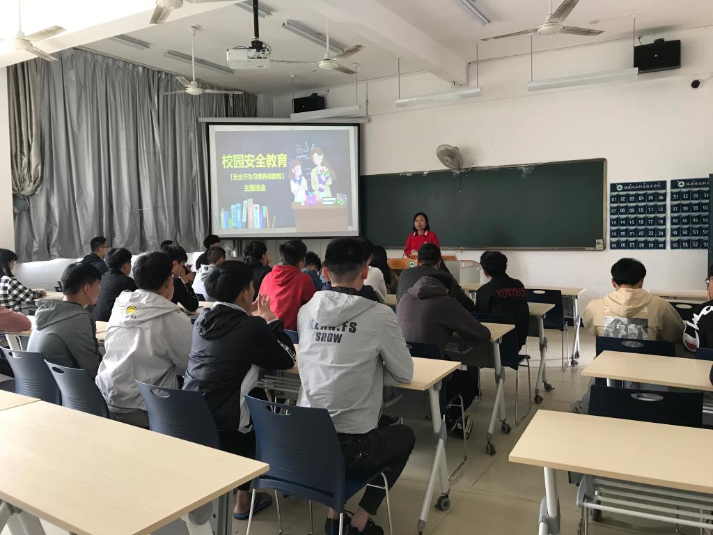 辅导员高昕老师组织所带班级学生在实训一605召开以“安全教育”为主题的班会,内容如下: