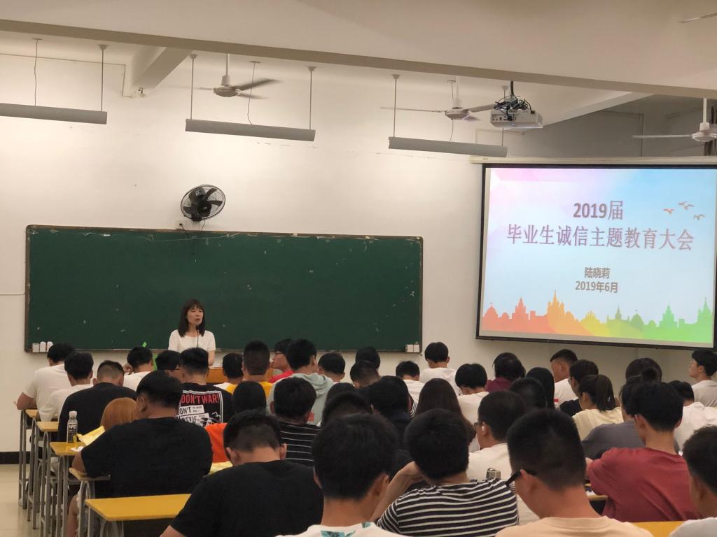 君子养心,莫善于诚。2019年6月16日——19日,交通工程系2019届毕业班辅导员于实训四各个教室陆续召开毕业生诚信教育主题班会。