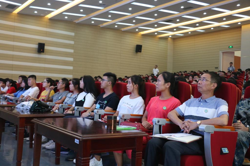 课上,孙华主任以校训“明思、笃行、业精、德厚”为题给新生们上了一堂“校史文化课”,并从学校办学声誉、办学条件、办学质量、师资力量四个方面介绍了我校。他表示学院招生录取工作开展顺利,报考率、录取率均突破新高,学院社会影响力不断扩大,教学质量明显提升,办学实力明显增强,他希望在这样的大学里,同学们能够认真地学习,不断地积累,努力成为一名德智体美劳全面发展的社会主义建设者和接班人。