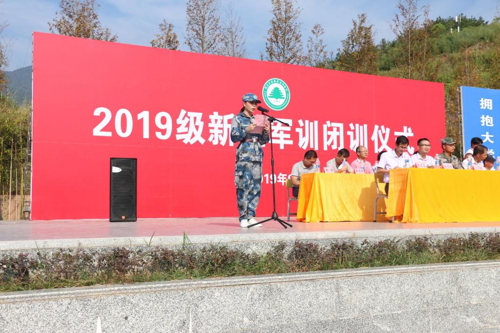 2019年9月14日上午7:30,福建林业职业技术学院2019级新生军训闭幕式在田径场举行。交通工程系党总支书记李肇锋、系主任孙华、副主任宋晓东、学生科长陈静、新生辅导员以及参加训练的全体教官和学生参加了闭幕式。结训典礼由副院长严绍裕主持。