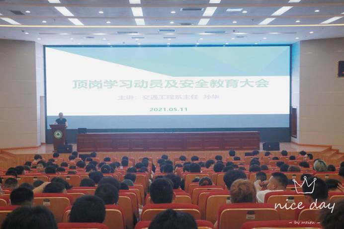 顶岗实习是高等职业教育学生加强职业技能锻炼,促进理论与实践相结合的重要举措,是高职院校学生必修的课程之一,为贯彻落实全国职业教育大会精神,加强我系学生对顶岗实习的正确认识,做好顶岗实习期间的安全教育工作,按照学院统一部署,5月12日晚,我系在图书馆报告厅召开顶岗学习动员及安全教育大会,我系李肇锋书记、孙华主任、学工组全体辅导员和2022届全体毕业生参加本次大会,本次大会由我系孙华主任主持。
