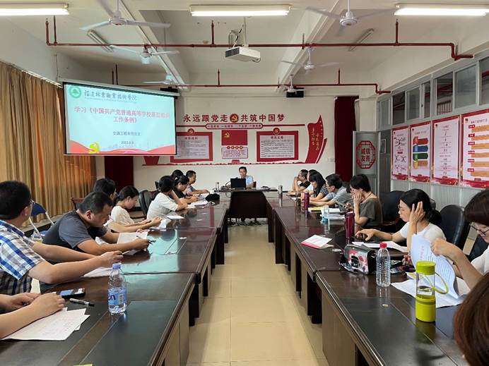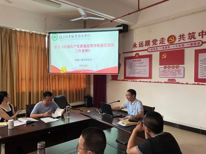 为了深入贯彻习近平新时代中国特色社会主义思想,贯彻落实新时代党的建设总要求和新时代党的组织路线,加强和改进高校党的建设,根据学院统一安排,6月8日下午,交通工程系党总支召开《中国共产党普通高等学校基层组织工作条例》学习会,我系全体党员同志参加学习,李肇锋书记主持学习。