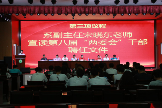 第三项,我系副主任宋晓东老师宣布了第八届两委会干部聘任名单。