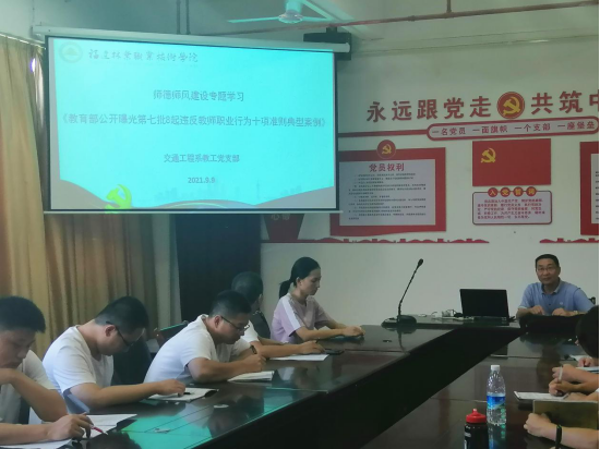为深入贯彻习近平总书记近日在北京师范大学师生代表座谈会上的重要讲话精神,积极引导我系教师做有理想信念、有道德情操、有扎实学识、有仁爱之心的党和人民满意的好老师,大力加强和改进师德建设,9月9日下午,我系在实训一六楼会议室组织召开师德师风建设专题学习会,李肇锋书记主持会议,全体教师参加学习会。