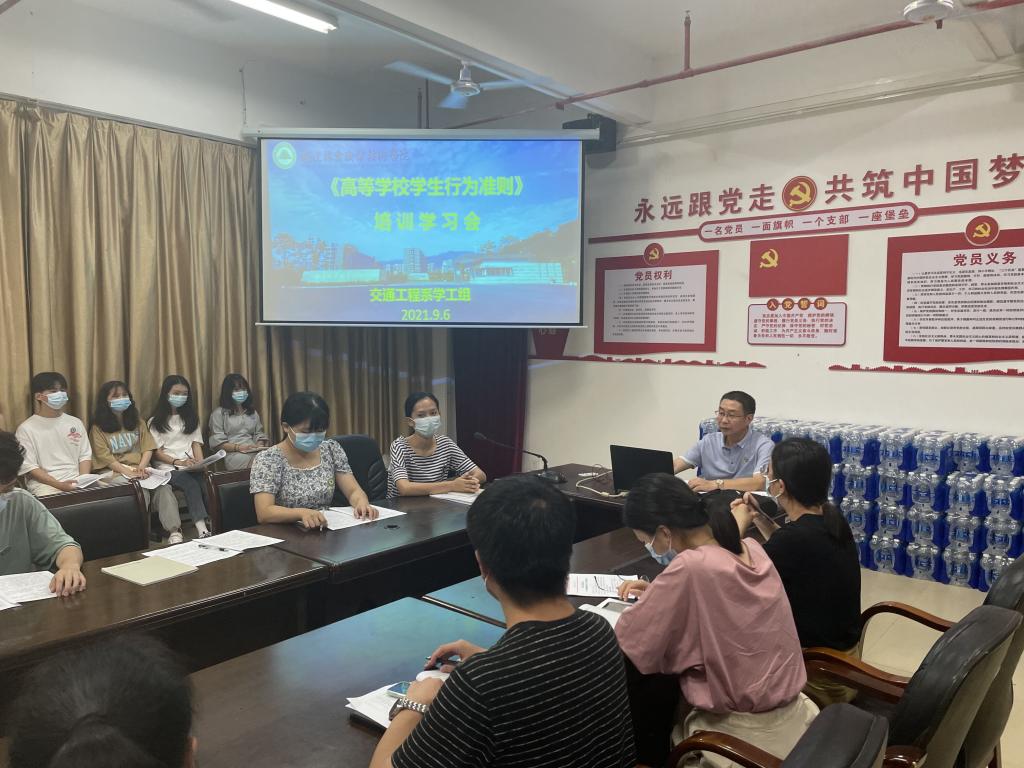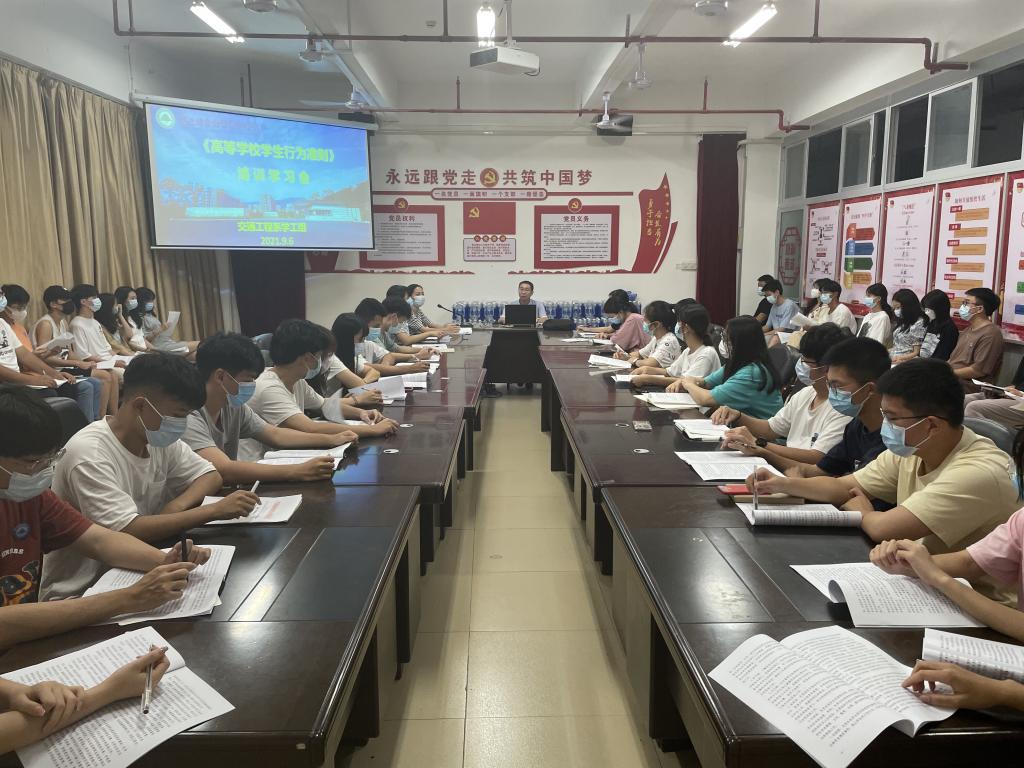 为加强我系学生思想政治教育工作,引导学生坚定理想信念,形成良好的道德品质,养成文明行为习惯,9月6日晚,我系组织召开《高等学校学生行为准则》培训会,我系两委会学生参加培训会,李肇锋书记主持会议。李书记指出,“志存高远,坚定信念”,“热爱祖国,服务人民”,“勤奋学习,自强不息”,“ 遵纪守法,弘扬正气”,“诚实守信,严于律己”,“明礼修身,团结友爱”,“勤俭节约,艰苦奋斗”,“热爱生活,强健体魄”,这些朗朗上口,便于记忆的词语,高度概括对新时代大学生的要求,是教育部近期出台的《高等学校学生行为准则》的一大特征,新《准则》是教育部在对全国不同地区不同类型大学的学生现状调研分析,参阅了大量国内外有关规定或资料,广泛征求高校和专家等各方面意见后,对1989年颁发的《高等学校学生行为准则(试行)》修订形成。它从如何处理好与国家、社会、学校、个人四个层面的关系上,对大学生从政治、思想、学习、道德、健康等八方面提出原则性的基本要求。