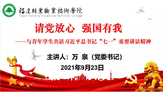 万书记从电视剧《觉醒年代》说起,从“伟大成就:党百年奋斗的伟大成就”“精神之源:首次提出伟大建党精神”“基本方略:未来中国共产党怎么做”三个方面详细说明了“办好中国的事情,关键在党。”“没有共产党,就没有新中国,就没有中华民族伟大复兴。”为切实做好疫情防控工作,保障全院师生员工的健康和安全,万泉书记向同学们提出了几点希望:一是落实防控要求,二是非必要不外出,三是严格配合核酸检测,四是做好健康管理,五是加强个人防护,六是尽快接种疫苗,七是科学防范莫恐慌。