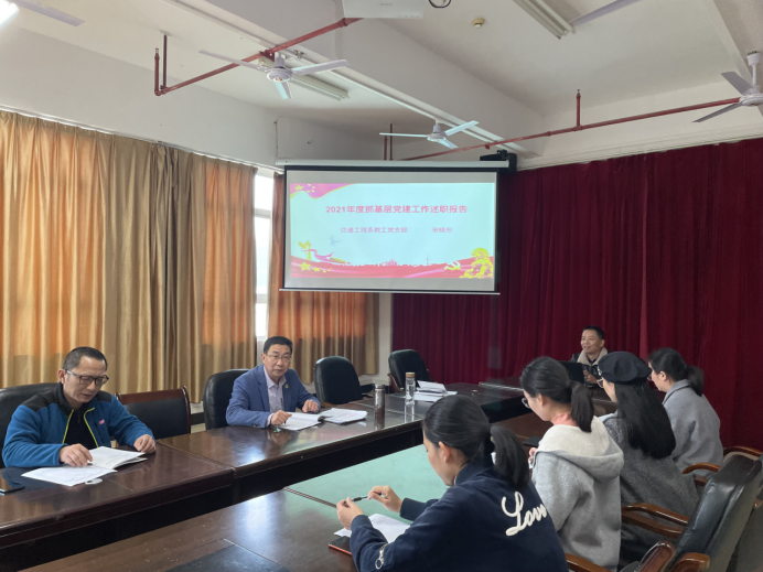 为全面贯彻落实党的十九届六中全会精神,学习贯彻习近平总书记“七一”重要讲话和来闽考察重要讲话精神,推动基层党组织和广大党员开展党史学习教育,学懂弄通做实习近平新时代中国特色社会主义思想情况,1月6日下午,交通工程系党总支召开2021年度抓基层党建工作述职报告会,我系党总支成员、学生第一党支部书记姜晓娟、学生第二党支部书记李琼琼参加会议,会议由我系党总支书记李肇锋主持。