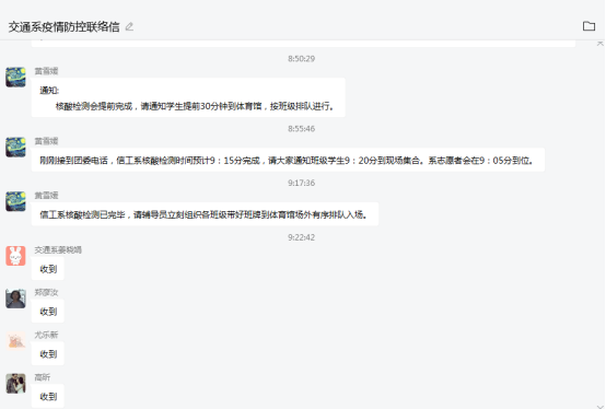 二是积极组织全系师生进行核酸检测。按照学院相关部署,3月17日,我系抽取25%的师生参加核酸检测,3月20日,组织3月17日没有参加核酸检测的师生进行全员核酸检测。我系高度重视全系师生的核酸检测工作,党总支指派专人分别负责教师和学生的检测工作,安排学工组辅导员全员到场,组织本班级同学按顺序进行核酸检测,安排学生党支部的志愿者在核酸检测现场进行引导工作,维持现场秩序,充分发挥党员的先锋模范作用。
