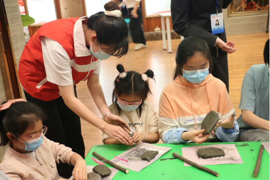 天街小雨润如酥,志愿者们早早起床,迎着小雨到达博物馆。经过工作人员的分配,明确了自己的任务。一群可爱的小朋友们也如约而至,志愿者们也开始忙活起来,帮助小朋友孰知古代劳动工具后,围在大桌子旁,开始了陶艺制作。现场十分热闹,有小朋友们成功制作后喜悦的欢呼声,有工作人员和志愿者对小朋友的赞美鼓励声。随着一个个小巧的陶艺制作完成后,此次活动圆满结束。
