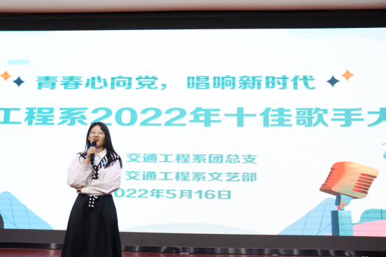 夏意渐浓,晚来风起,青春如火,岁月如歌。为迎接党的二十大胜利召开,积极响应“请党放心、强国有我”的伟大号召,不断丰富校园文化生活,展现交通工程系学子的风采,5月16日晚,交通工程系“青春心向党、唱响新歌声”十佳歌手比赛在江南礼堂隆重举行,安保处副处长杨峰、系专职组织员兼学生科长黄雪媛、学工组专兼职辅导员及系部学生参加本次活动。