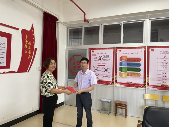 随后,教工党支部书记为6月、7月入党的党员同志送上祝福,并赠送了“政治生日”贺卡。“今天是我第一次过政治生日,组织的关心和栽培让我心中充满温暖、备受鼓舞。今后,我一定把讲政治守纪律放在首位,工作上埋头实干、脚踏实地......”,“即将退休的我,今天能和全体党员一起过政治生日,觉得很幸福,也非常有意义!我将以老党员的身份站好最后一班岗,不辜负党的信任和培养。”通过年轻党员和老党员代表的交流分享,进一步激励了全体党员要牢记初心使命、赓续奋斗精神,在本职岗位上作出更多更大贡献。