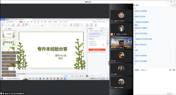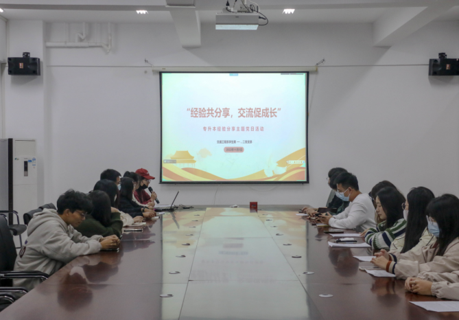 为了让2020级学生能在专升本考试中取得优异成绩,2022年11月5日晚,交通工程系学生第一、二党支部开展专升本经验分享主题党日活动。经验分享会上,我系特邀在2022年专升本考试中取得优异成绩的学生党员——刘霁瑶、鄢秀玲、张惠玉及杨文四位同学,以线上+线下直播的方式分享宝贵的学习经验。此次主题党日活动旨在帮助我系学生不断提升自身综合素质,以前仆后继、精神抖擞的姿态投身至更广阔的平台,不断发挥自身优势,大展拳脚。