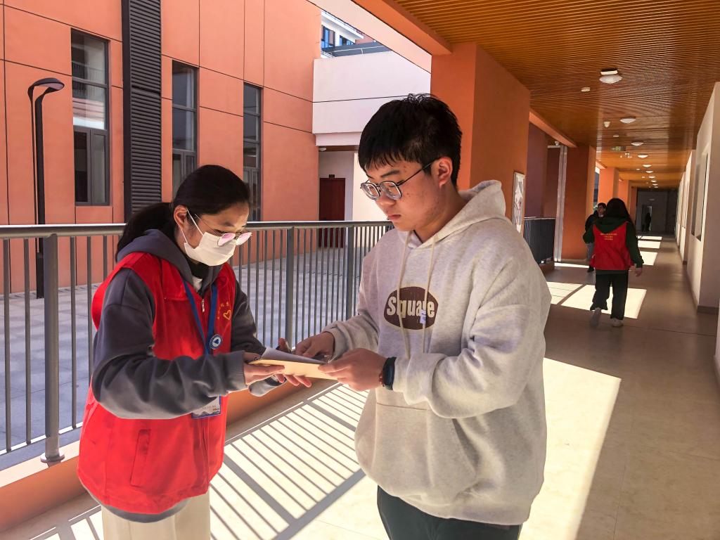 系团总支组织“两委会”主要部门在交通楼各个路口认真检查,“一查”学生校徽佩戴情况;“二看”学生进入教学区域是否衣着整齐,有无出现穿拖鞋、携带香烟等不良风貌;“三问”学生是否能熟练记忆学院校训并背诵完整。经过检查,大多数同学都能正确佩戴校徽,能熟练记忆学院校训,没有穿拖鞋、抽烟等不良现象。