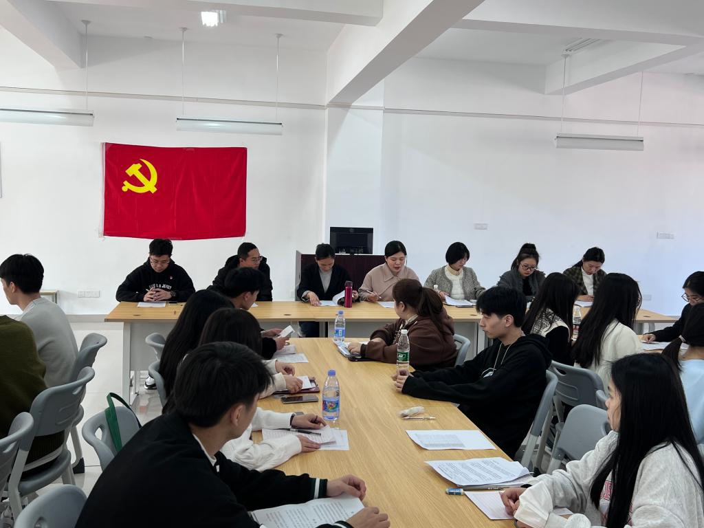 2月23日下午,交通工程系学生第一党支部在交通楼504召开预备党员转正大会,会议由党支部书记张铭主持,支部教师党员姜晓娟、李建文、高旭、韩嘉艺、马晓敏等参加大会。