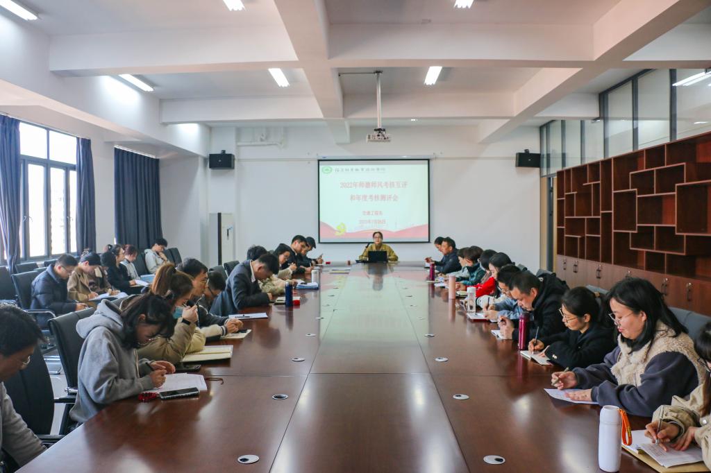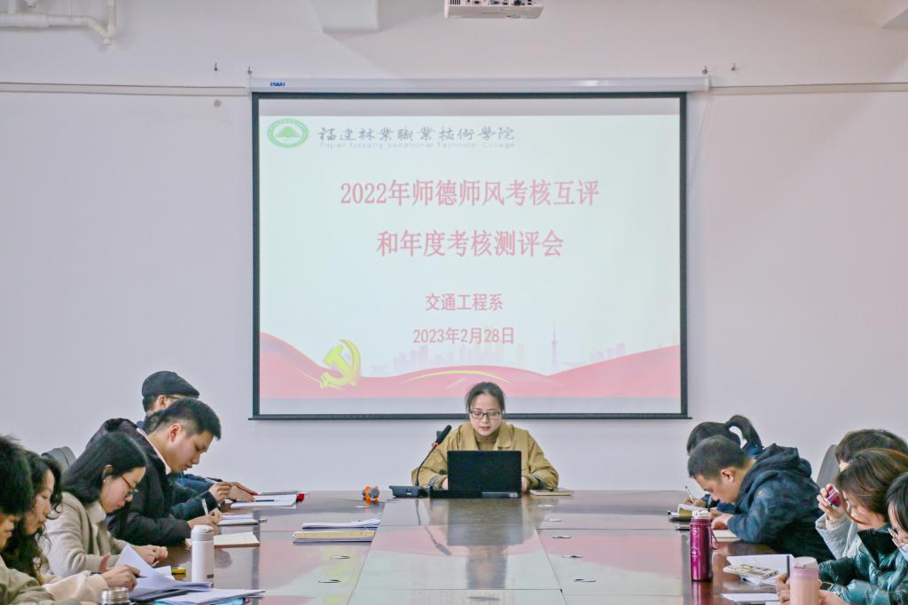 为做好系部2022年度师德师风考核和年度考核工作,根据学院统一安排,2月28日下午,我系在交通楼会议室召开2022年度师德师风考核和年度考核测评会,本次会议由系党总支书记陈莉主持,考核组所属全体教职工参加。