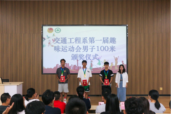 青春挥洒激情,运动焕发光彩;汗水浸湿衣衫,荣光披肩而上。交通工程系第一届田径运动会已圆满落下帷幕,为表彰我院运动健儿在赛场上的精彩表现以及全体工作人员的辛苦付出。7月3日下午3时,交通工程系召开第一届田径运动会闭幕式暨总结表彰大会,大会于江南校区阶梯教室(二)隆重举行。系党总支书记陈莉、副主任李林威、专职组织员黄雪媛、教务科科长陈毅勇、全体专职辅导员及学生代表、运动员代表参加本次大会,大会由系学生科科长兼团总支书记李建文主持。