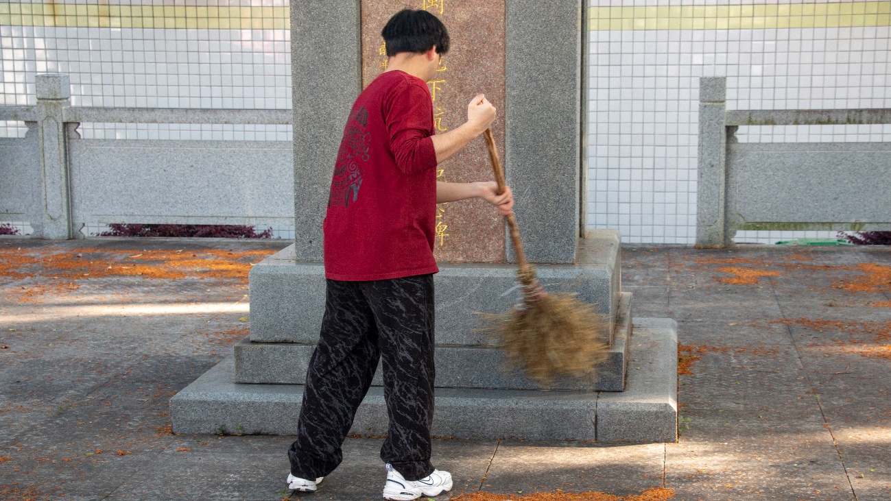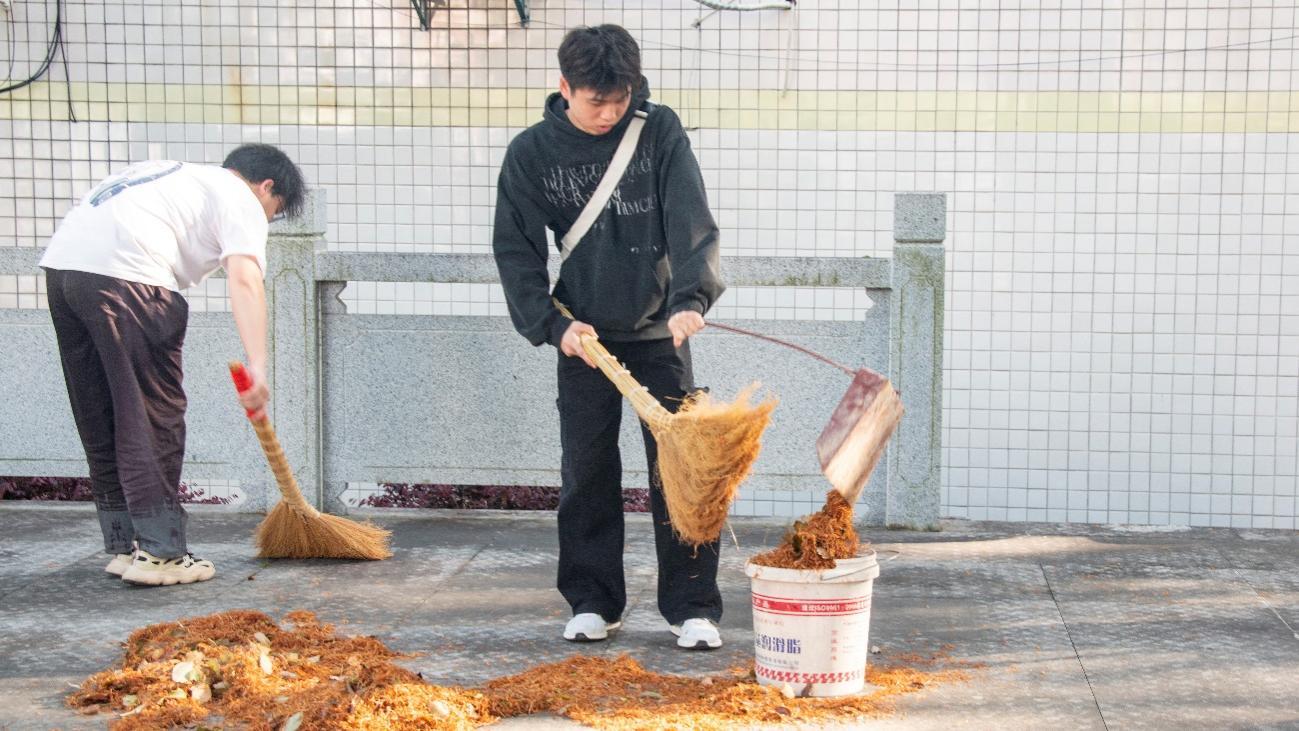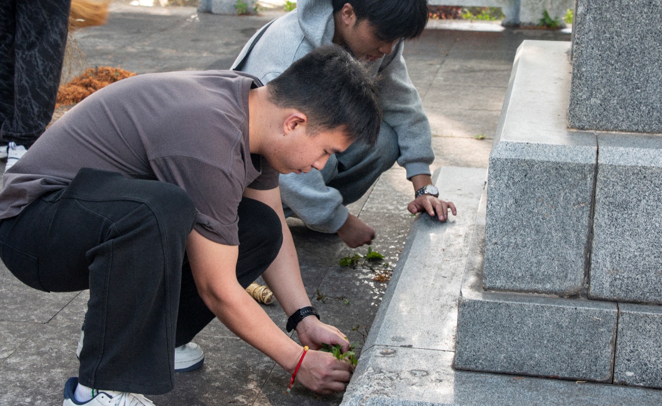 历时近三个小时到达中共闽浙赣省委闽江地下航线纪念碑。在庄严肃穆的氛围中,同学们自发组织起来,手持扫帚、抹布等工具,仔细清扫纪念碑周边的落叶、杂草和杂物,擦拭碑体上的尘埃。每一个细微的动作里,都饱含着对革命烈士深深的敬仰与深切的缅怀。大家以实际行动,表达着对革命先烈的沉痛悼念与无尽哀思。