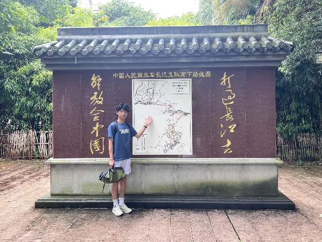 3.站在纪念碑前,“中国人民解放军长江支队南平纪念园” 的鎏金大字在阳光下熠熠生辉。转身望去,石雕群正无声诉说着那段峥嵘岁月:队员们背着 “三件宝”—— 步枪、棉被、文件包,弯腰穿行在武夷山密林中,有的举枪警戒,有的搀扶伤员,石刻的纹理里仿佛还能触摸到当年的风雨。沿着步道前行,队员名单墙映入眼帘。密密麻麻的名字从墙顶排到墙根,有的字迹已有些模糊,却个个重若千钧。这些名字背后,是 4000 多名太行、太岳儿女的青春与生命,他们中有的牺牲在南下路上,有的长眠在闽北大地,名字或许会被岁月侵蚀,但精神永远鲜活。身旁的南下路线图铺满整面墙,红线从山西出发,蜿蜒穿过河南、湖北、江西等六省。3000 多里的征途上,每一个红点都是一场战斗、一次突围,路线图上的折痕,恰似他们踏过的千山万水,见证着 “打过长江去,解放全中国” 的坚定誓言。走进宣传长廊,老照片与文字解说交相辉映。这里不仅复刻了王毅之那只磨损的搪瓷缸,更展示着他带领群众修水渠、建学校的场景。长廊尽头,“艰苦奋斗、无私奉献” 八个大字格外醒目,这正是长江支队精神的最好注脚。正是这样一群人,用血肉之躯筑牢政权根基,让红色基因在闽北大地深深扎根。名单墙上的名字、路线图上的征途、长廊里的故事,都在诉说着 “舍小家为大家” 的深沉家国情怀。如今的太平盛世,是他们用脚步丈量出来的,用生命守护住的。作为新时代青年,唯有将这份精神融入血脉,在各自岗位上续写奋斗篇章,才不负 “长江后浪推前浪” 的期许,让家国情怀在代代相传中愈发滚烫。