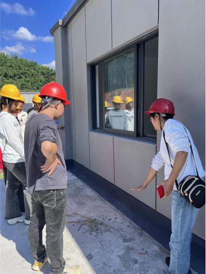 戴上沉甸甸的安全帽,踏入施工现场,同学们的眼神充满了新奇。在项目负责人的引导下,大家穿梭在建筑室内外,项目负责人不仅耐心解答了学生们关于建筑结构、材料应用、智能建造等方面的专业问题,还分享了自己的职业成长经历和感悟,同时特别提到,当前建筑行业正经历深刻转型,绿色建筑、智能建造等新方向蓬勃发展,对人才的知识结构和创新能力提出了更高要求,鼓励在校大学生们要夯实基础、拓宽视野、勇于创新。
