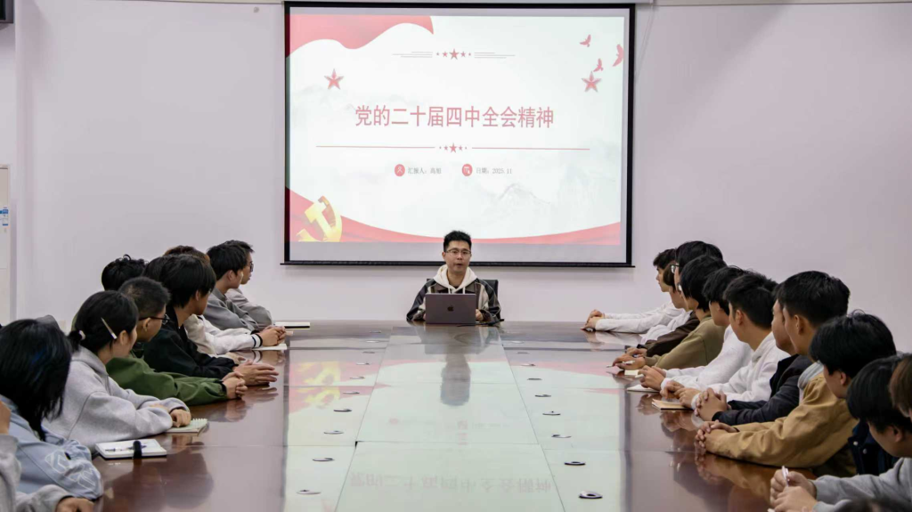 为推动党的二十届四中全会擘画的“十五五”宏伟蓝图在青年学生心中落地生根,引导学生预备党员与入党积极分子深刻认识时代使命,将个人成才的“黄金期”对准国家发展的“攻坚期”,11月13日晚,交通工程系学生第二党支部书记高旭于交通楼501会议室组织开展深入学习贯彻党的二十届四中全会精神专题党课。