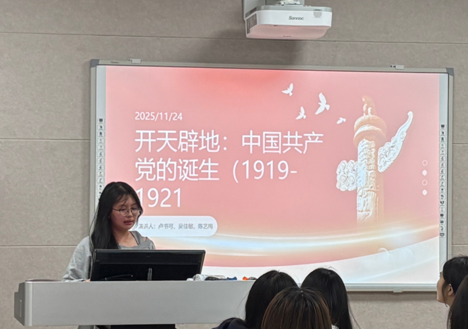 在本次活动中,入党积极分子吴佳敏以“开天辟地——中国共产党的诞生”为主题,通过生动的故事、丰富的案例和翔实的史料,带领在场党团员回顾了那段波澜壮阔的历史。从五四运动的爆发到马克思主义在中国的传播,从各地共产主义小组的成立到中共一大的召开,深入浅出地讲述了中国共产党诞生的历史背景、艰辛历程和伟大意义。