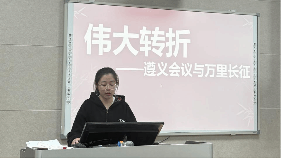 “1935年1月,贵州遵义老城一幢二层小楼里,三天的会议改写了中国革命航向。”入党积极分子龚菲菲用动态路线图还原湘江血战、土城鏖战、四渡赤水、飞夺泸定桥等关键节点,现场对比“左”倾路线与毛泽东实事求是路线的胜负数据:同样的赤水河,九个月前红军被动挨打;四渡之后,3万对40万实现“得意之笔”大回旋。