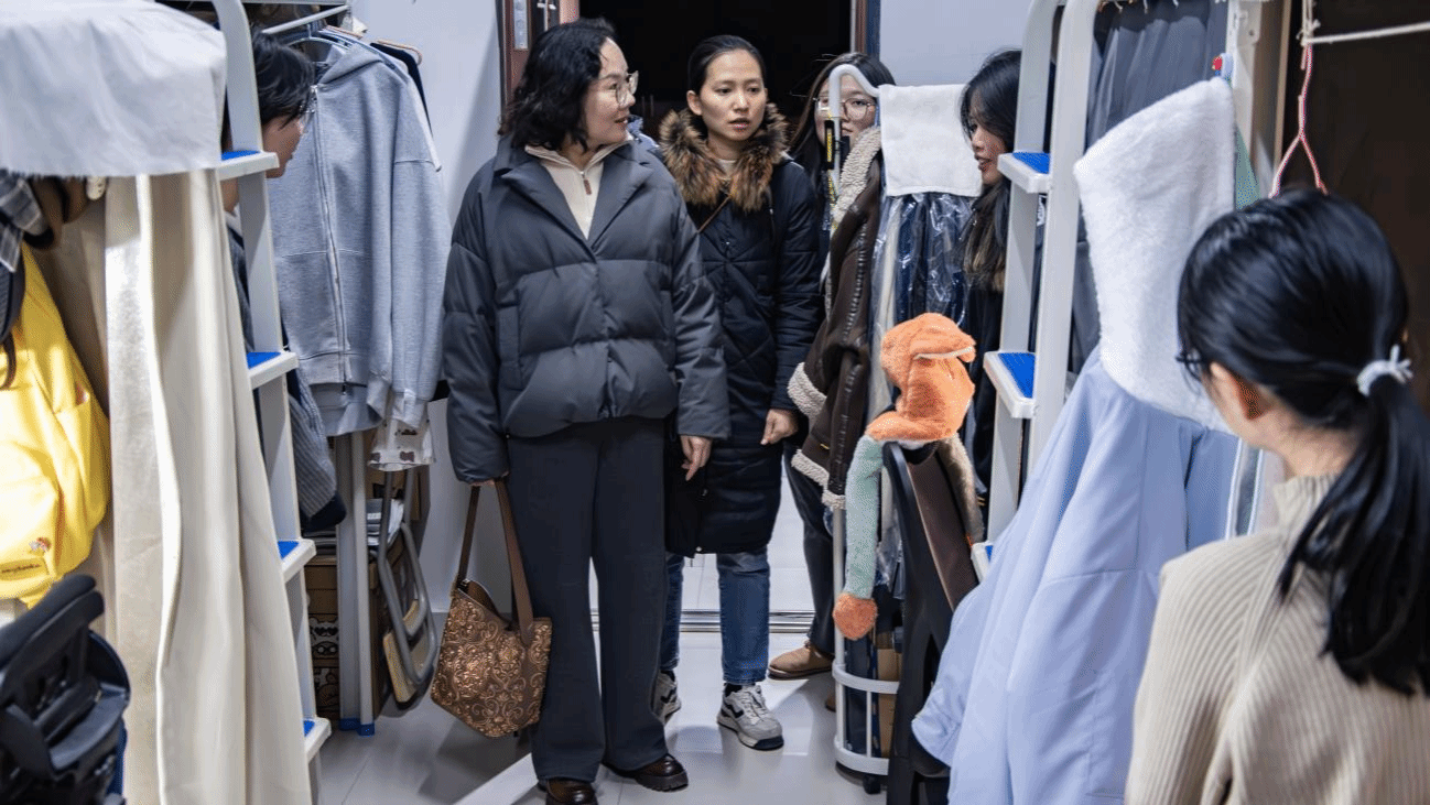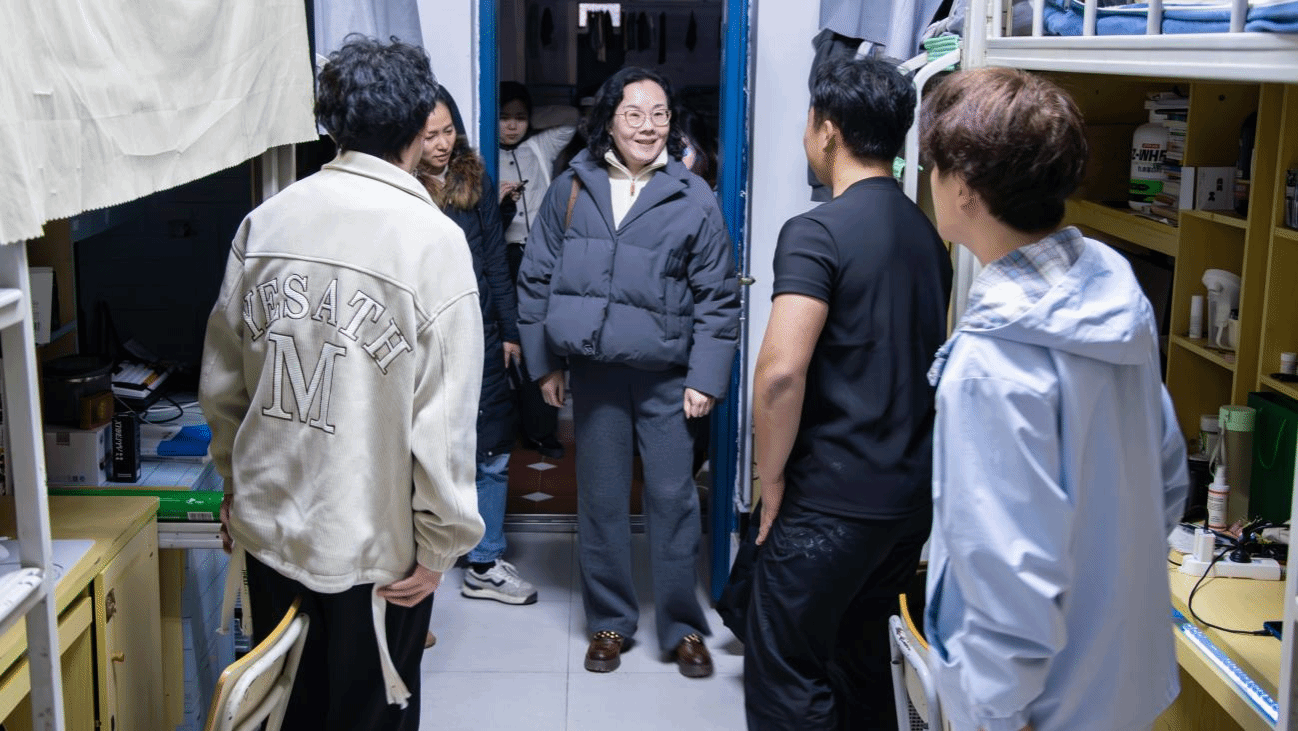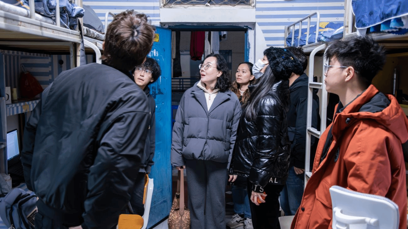 走访过程中,薛莉书记一行逐一走进各年级宿舍,细致检查用电安全和宿舍卫生环境等情况,并就期末阶段常见安全隐患进行现场排查与提醒。与同学们亲切交谈,了解复习备考状态与离校安排,尤其对宿舍物品整理、电源关闭等细节作出温馨提醒。