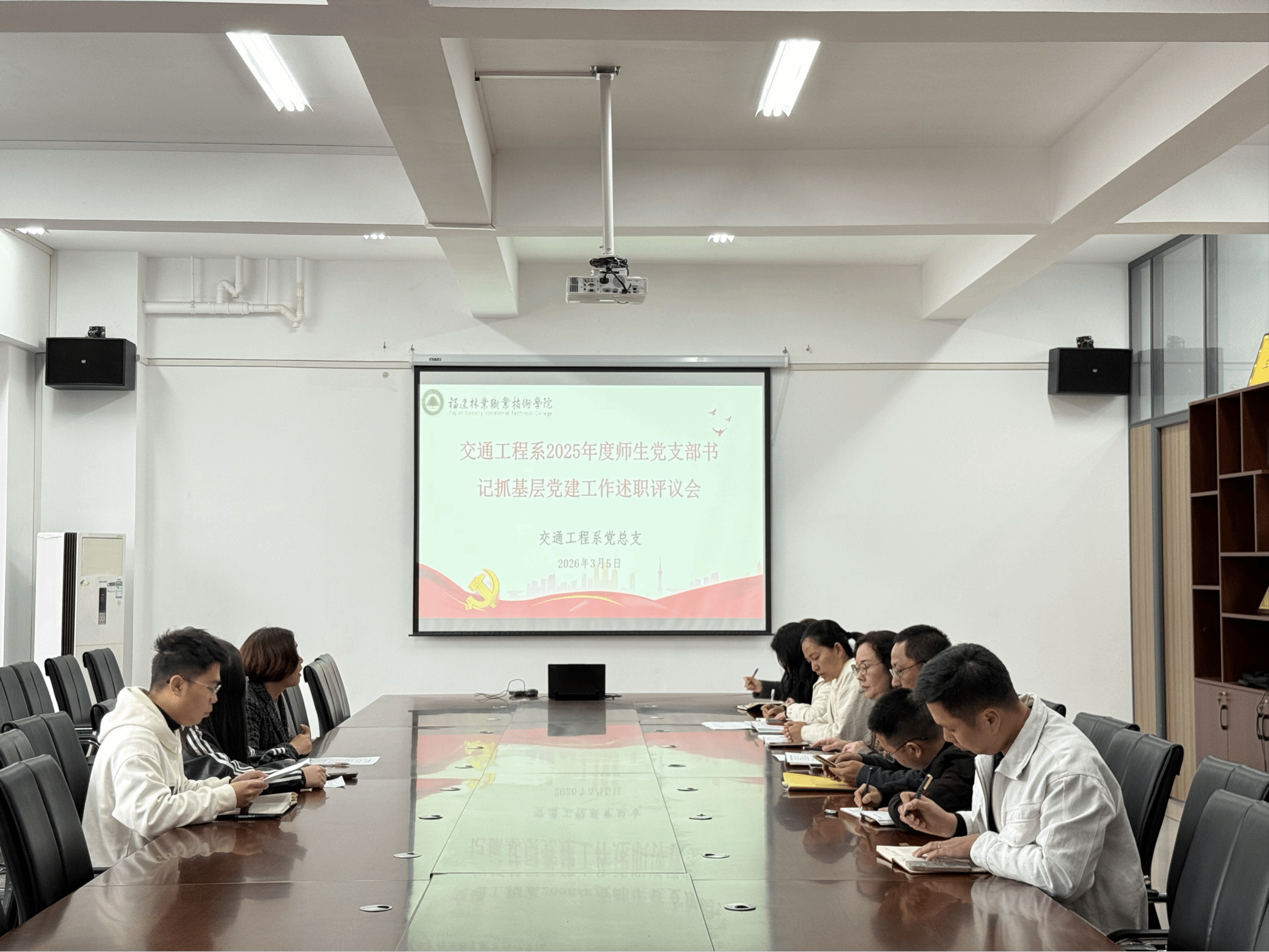 2026年3月5日下午,交通工程系组织开展2025年度师生党支部书记述职评议会。交通工程系党总支委员、各党支部书记、青年教师代表等参加述职评议会议。会议由系党总支书记薛莉主持。