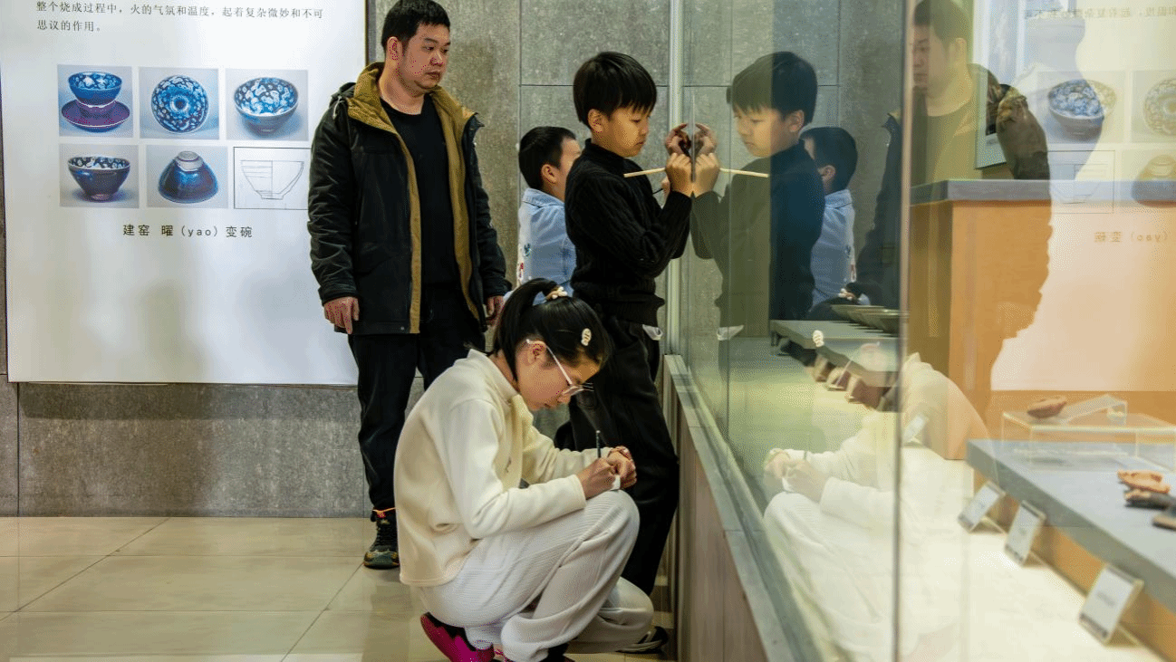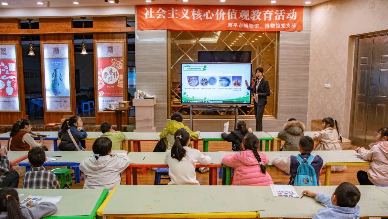 活动伊始,志愿者引导青少年步入展厅,开启“馆藏草木寻踪”之旅。志愿者们协助维护现场秩序,引导青少年仔细观察瓷器上的花卉纹饰、书画中的草木意象、铜器上的植物造型,并生动讲解每一件文物背后的植物文化与历史内涵。通过这次探寻之旅,青少年们对闽北历史文化和传统生态观念有了更加深入的理解。