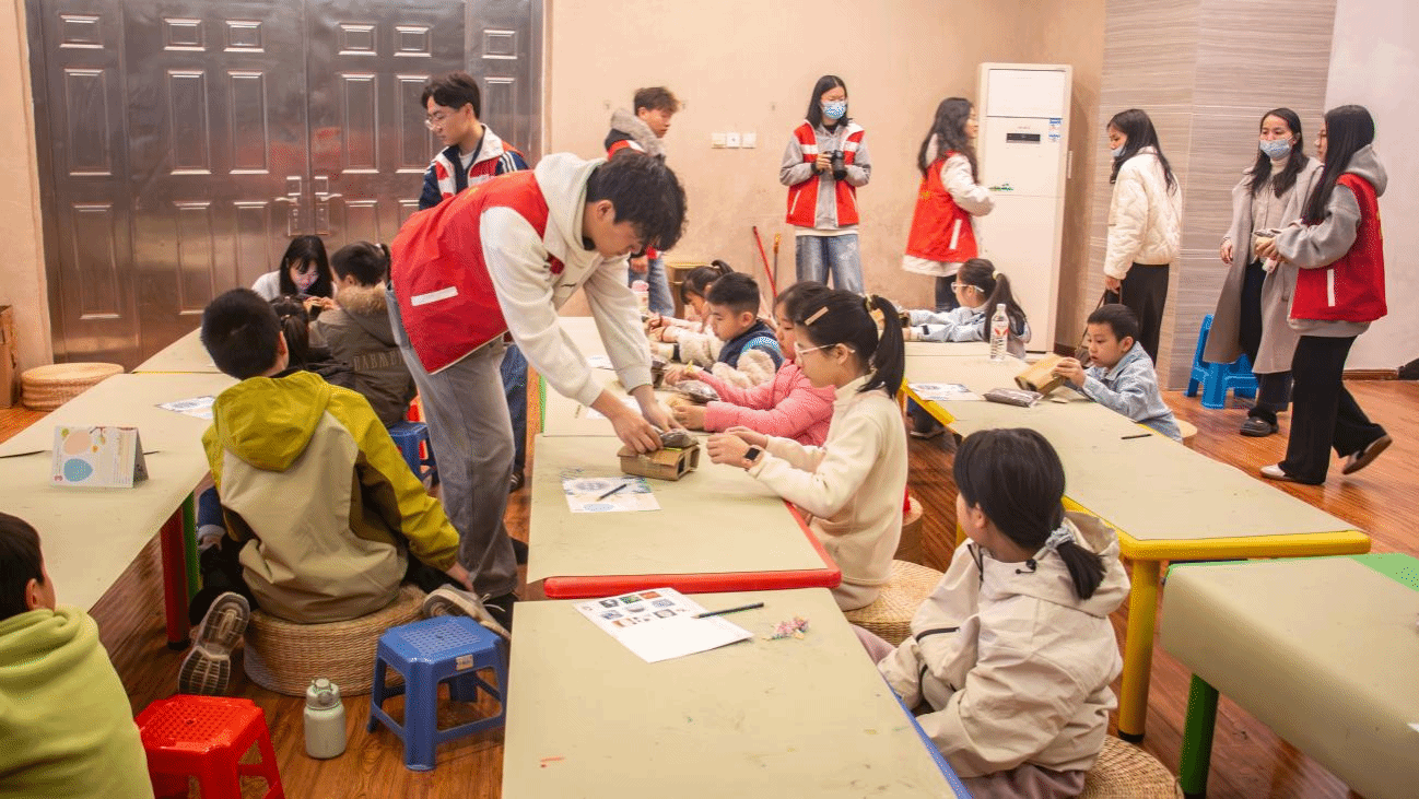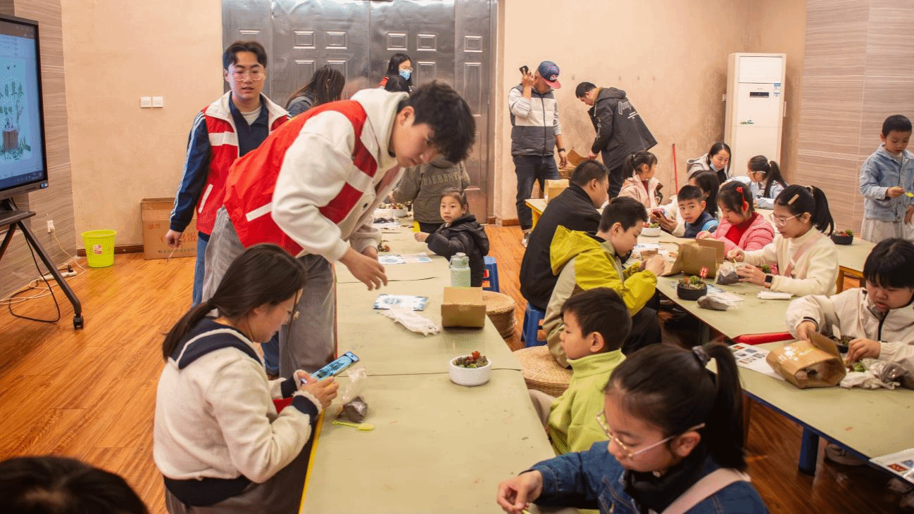 在“春日草木科普课堂”与“草木文创手工”体验环节,志愿者们分工协作、默契配合。在科普课堂上,他们协助博物馆老师开展互动教学,向青少年们介绍植树节的由来及绿植养护知识;在手工体验区,志愿者们悉心指导参与者进行多肉植物种植,从填土、栽苗到装饰摆件,耐心讲解每一个步骤,让“植绿、爱绿、护绿、兴绿”的生态理念在动手实践中深入人心。