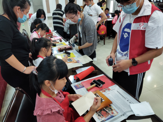 在博物馆里志愿者们细心宣讲中国和世界的印刷术历史,还原课本背后的真实历史,带领小朋友们探索人类文明传播的历史,在志愿者的讲解下,小朋友们跃跃欲试、积极参与,想亲手印制一副自己的印刷作品,既有成就感又能感受古代匠人的聪明才智。小朋友们也在体验过程中亲自感受到“活字印刷”万一要是出错,只需要修改错的地方,而雕版印刷一旦有错就要从头再来的差别。