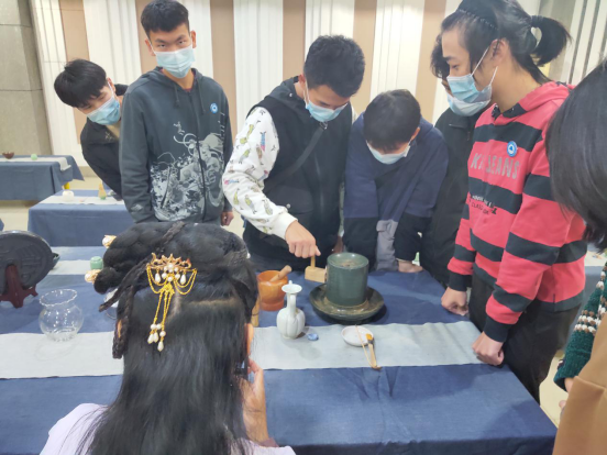 志愿者们依次通过体温检测、健康码验看和身份核对后,进入博物馆,今日博物馆的主题为点茶和汉服剪纸,首先由博物馆讲解员向大家介绍了点茶和剪纸的历史文化,中华文化传承千年,每一样都经过长时间的演变和沉淀,部分随着时间慢慢消失和没落,但随着人们对传统文化的重视,汉服文化、点茶和剪纸的兴起,是对传统优秀文化的复兴。