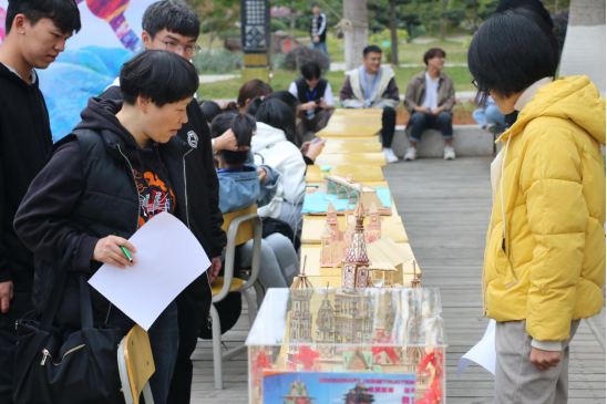 社团文化周活动首个项目是拔河比赛,随着哨声的响起,比赛开始了,双方队员紧握绳子,他们一个个脚瞪地,拼命向自己的方向拽绳子,绳子一会向这边一会向另一边,双方的互不相让;第二个项目是踩气球,每个队员都在拼尽全力的参与比赛;还有让同学绞尽脑汁的你比我猜、筷子入瓶、夹弹珠、有错你就说和让同学们挥洒青春展示活力的荧光夜跑比赛。除了这些精彩的比赛,社团文化周的游园活动在现场设有多个学校社团的展示摊位,绘画展、建筑房屋模型作品等静态的展示则让大家看到了社团文化的沉淀,让致力于社团文化建设的师生们得到了大家的认可。