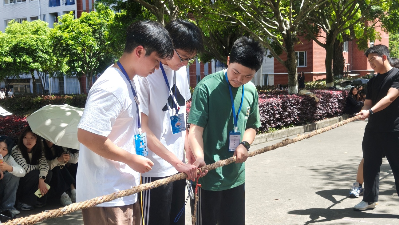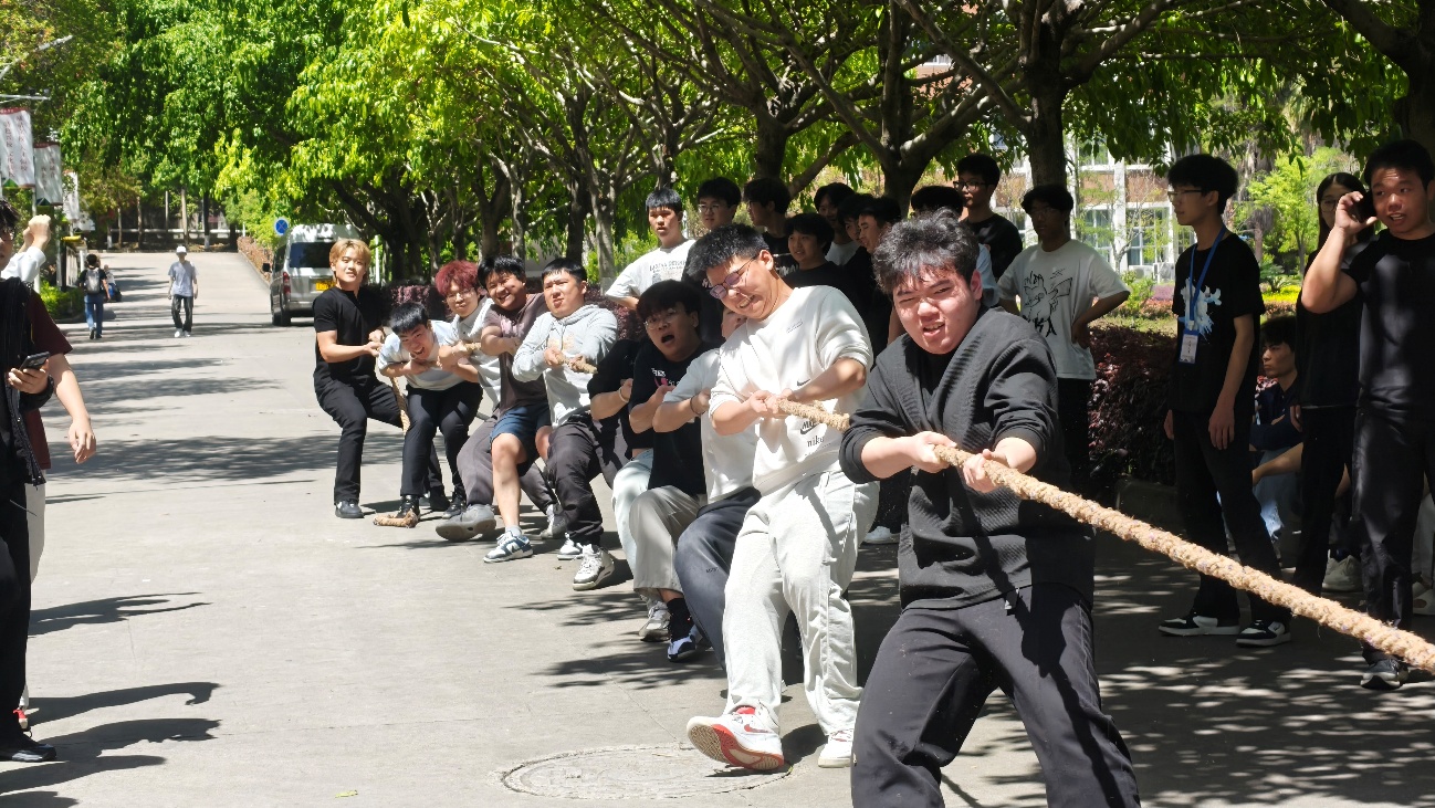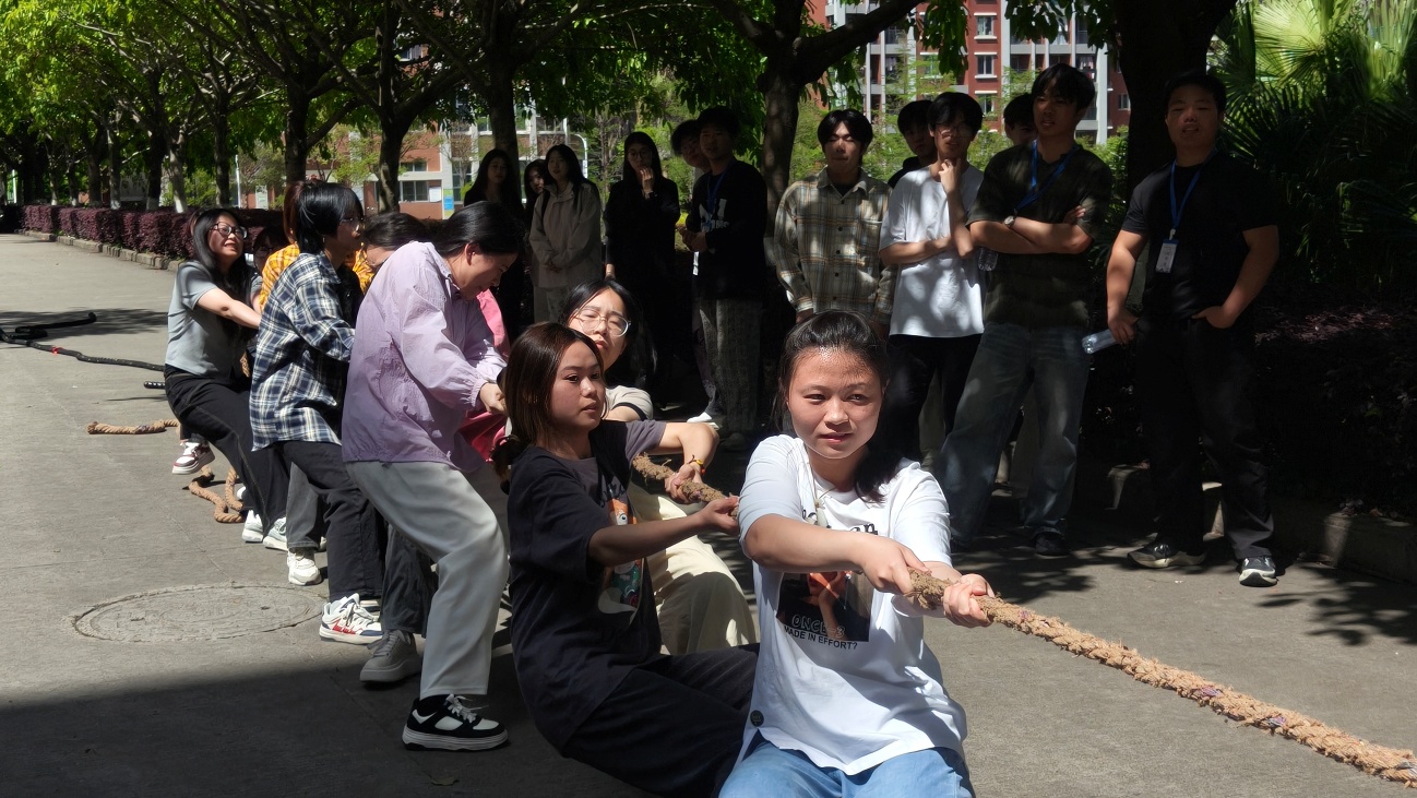 为激发广大学生的运动热情和青春活力,培养团队精神与竞争意识,促进彼此间的交流与合作,4月15日下午交通工程系学生会在1-2号学生公寓楼下举行拔河比赛。