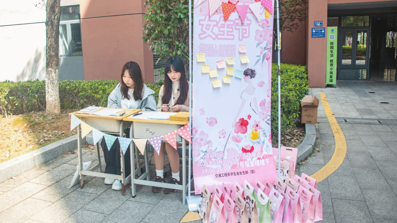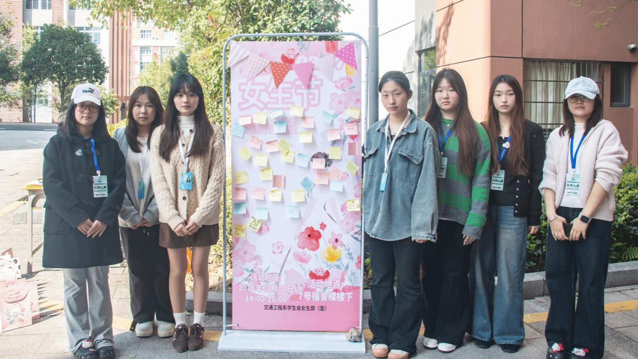 春风启序,芳华正好;三月鎏光,温柔绽放。当春日的暖意漫满校园,当青春的光芒映照眉眼,每一位女生都以独有的姿态,书写着自信与闪耀的青春篇章。为深耕校园文化内涵,彰显新时代女大学生昂扬向上的精神风貌,同时筑牢温馨和谐的宿舍育人阵地,助力一站式学生社区品质提升,3月7日,交通工程系女生部在七号学生宿舍公寓楼下温情举办第十一届宿舍文化节“悦己至上,自在闪光”3·7女生节活动。