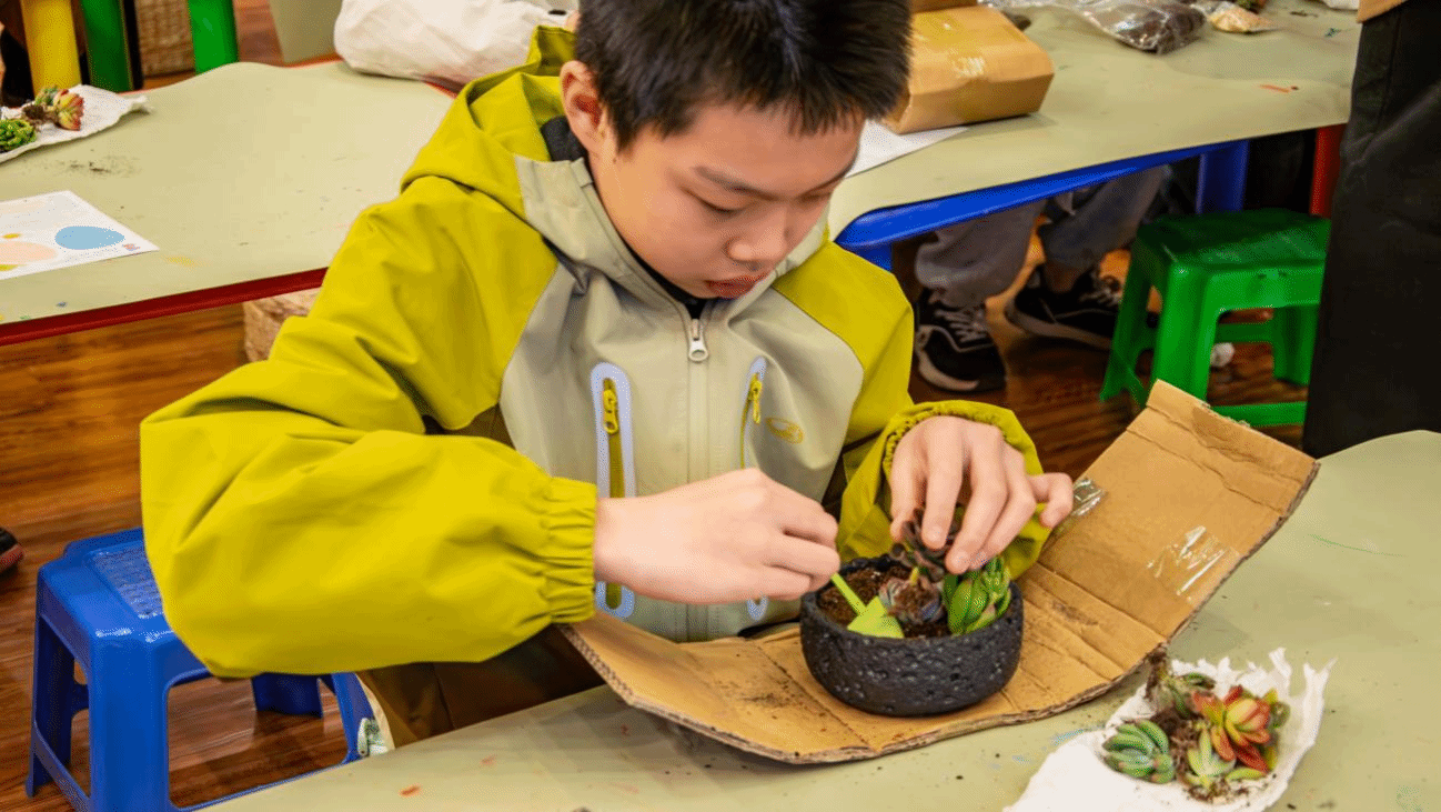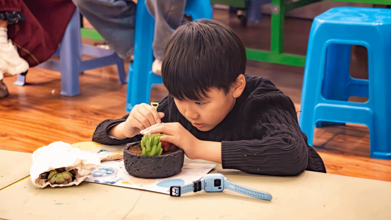 在“春日草木科普课堂”与“草木文创手工”体验环节,志愿者们分工协作、默契配合。在科普课堂上,他们协助博物馆老师开展互动教学,向青少年们介绍植树节的由来及绿植养护知识;在手工体验区,志愿者们悉心指导参与者进行多肉植物种植,从填土、栽苗到装饰摆件,耐心讲解每一个步骤,让“植绿、爱绿、护绿、兴绿”的生态理念在动手实践中深入人心。