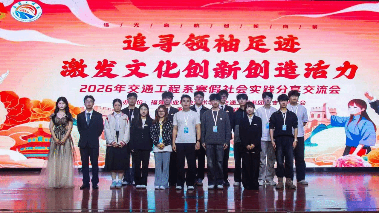为深入学习贯彻党的二十届四中全会精神,引导广大青年学生体悟习近平新时代中国特色社会主义思想的实践伟力,增强文化自信,激发创新创造活力,2026年3月19日,交通工程系在学院礼堂举办“追寻领袖足迹,激发文化创新创造活力”寒假优秀实践报告分享交流会。本次活动共吸引130名观众到场,共有12名选手分享了他们的实践经历与感悟。