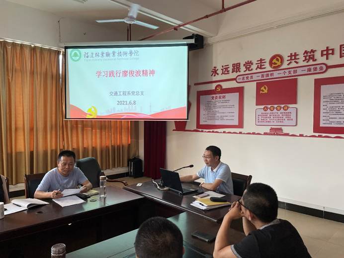 为深入贯彻落实习近平总书记重要讲话精神,围绕“学党史、悟思想、办实事、开新局”要求,深入学习践行廖俊波精神,继续推动党史学习教育走深走实,切实做到学史明理、学史增信、学史崇德、学史力行,根据《中共南平市委党史学习教育领导小组关于在党史学习教育中进一步学习践行廖俊波精神的通知》要求,按照学院党史学习教育统一安排,6月8日下午,交通工程系党总支召开廖俊波精神学习会,我系全体党员同志参加学习,李肇锋书记主持学习。