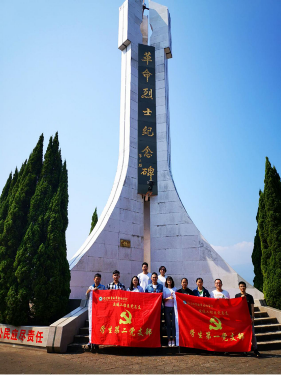 各支部全体党员参观了九峰山革命烈士纪念碑,雄伟肃穆的历史纪念碑,代表了后人对革命先烈的怀念,忘记历史就代表着背叛,没有那些为新民主主义革命和社会主义革命抛头颅洒热血的烈士们,就没有现在和谐繁荣的社会主义社会。为革命的胜利他们无所畏惧,为社会主义理想的实现他们舍生忘死,他们的心愿就在于中华民族能魏然屹立于世界东方,不受外辱,这是他们的初心和使命,也是我们所要牢记和发扬的精神。如今的盛世如你们所愿,作为现代人的我们只能通过简单的行动来表达对你们的敬意。
