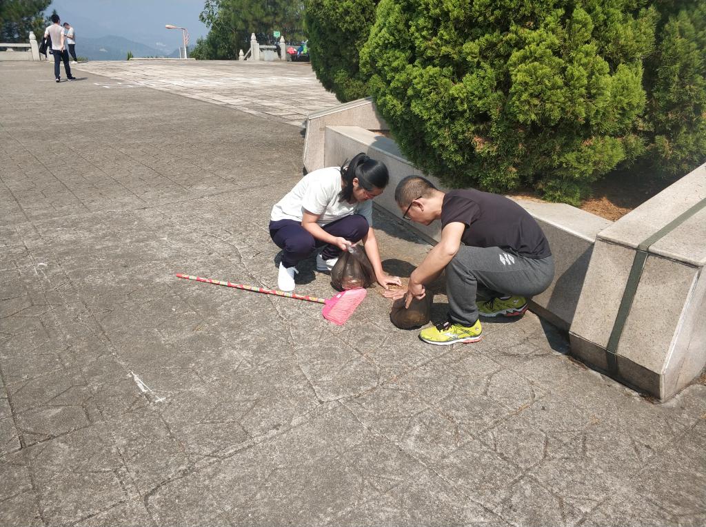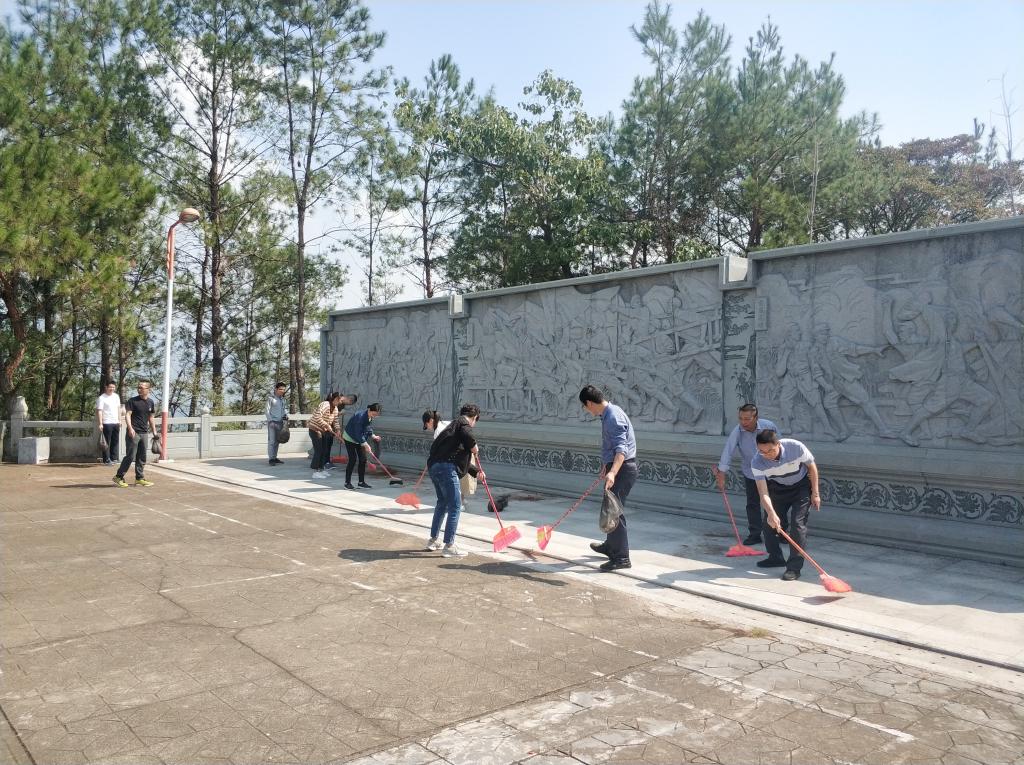 本次志愿活动的主要内容就是对九峰山公园的环境卫生进行清扫,以此表达对于革命先烈的怀念,也外游客创造良好的旅游环境。活动开始,在副院长叶世森、李肇锋书记和孙华主任的带领下,各位教工党员拿着早已准备好的工具对九峰山公园进行清洁打扫。台阶和广场上的落叶、丢弃的废纸和饮料罐等,都是各位党员同志清扫的对象,大家热情洋溢,有老师在清扫、有老师在装垃圾,当工具不够时,大家用手捡起来放进垃圾袋,经过大家的紧张热烈的清扫活动,九峰山公园中的纪念广场广场和革命烈士纪念碑焕然一新。