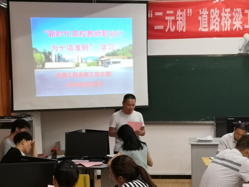 交通工程系开展“庆祝第35个教师节暨恪守新时代高校教师职业行为十项准则·争当“四有好教师”党日学习活动