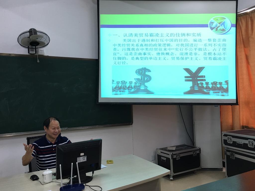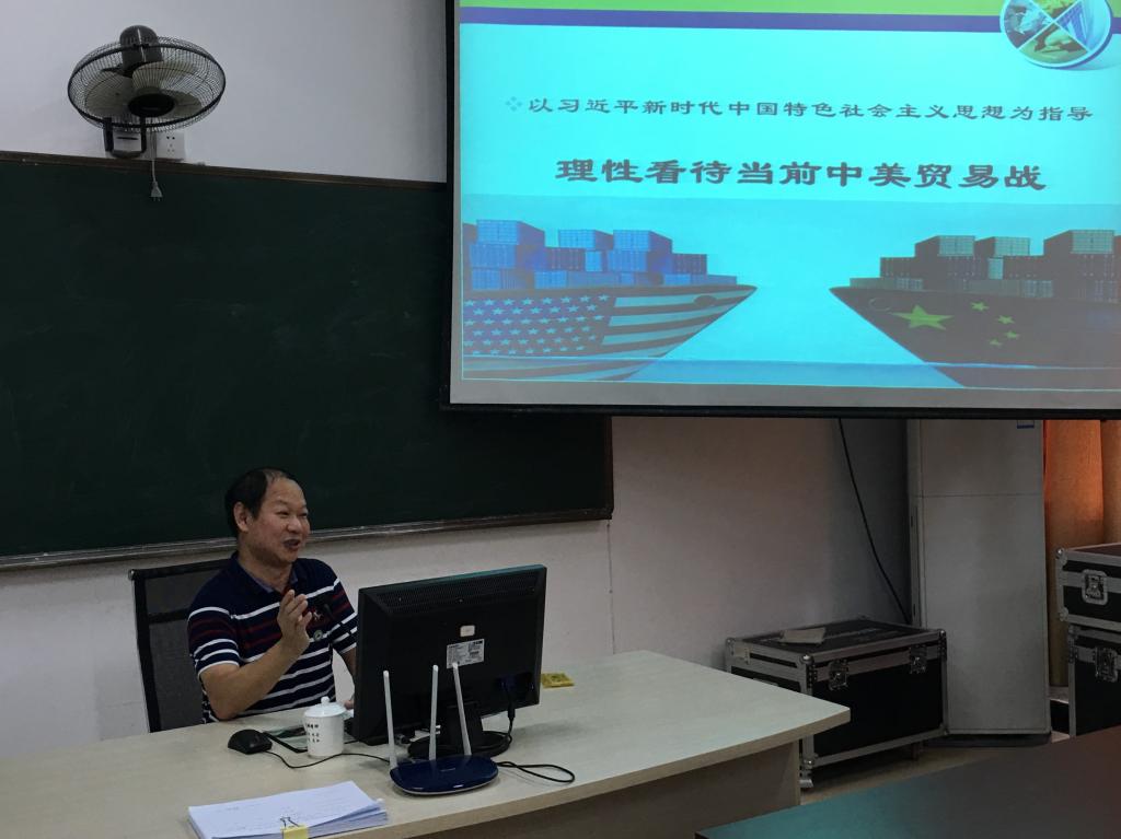 此次党课的主题是以习近平新时代中国特色社会主义思想为指导——理性看待当前中美贸易战。共有以下四点内容: