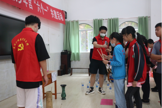 首先,参加活动的老师和同学们布置了游戏的各个环节,随后通过组织吹乒乓球,踢毽子,跳房子,投壶,套圈圈,螃蟹走等游戏,小朋友们穿一身校服,头戴红领巾,一脸开心地一起进入游戏的世界,在积极的参与和体验中收获了节日的快乐和成长的幸福。