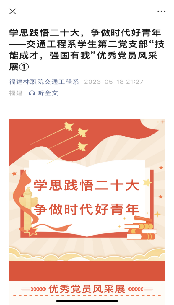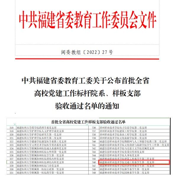 历史性斩获2023年全国职业院校技能大赛二等奖1项,三等奖1项;福建省职业院校技能大赛获一等奖4项,三等奖1项;1个基层党组织完成首批全省高校党建工作样板支部验收;1名教师被评为“福建省优秀教师”……2023年,交通工程系捷报频传。