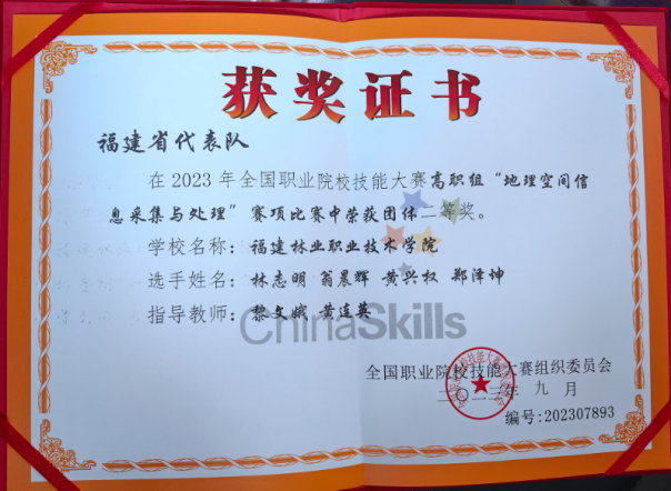 支部2022级预备党员郑泽坤荣获2023年全国职业院校技能大赛高职组“地理空间信息采集与处理”赛项团体二等奖