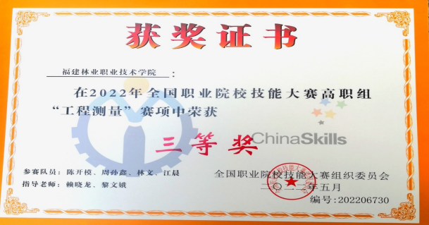 支部2020级毕业生党员陈开模荣获2022年全国职业院校技能大赛“工程测量”赛项三等奖