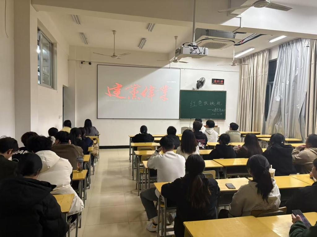 为深入学习贯彻党的二十大精神,全面落实习近平总书记关于“用好红色资源、赓续红色血脉”的重要指示精神,深化青年学生对中国共产党建党精神的领悟,2025年3月18日晚上,交通工程系学生第一、第二党支部在教学楼705组织开展“红色放映机——青春与党同行”系列观影活动之追寻《建党伟业》的峥嵘岁月,学生党员、入党积极分子共同参与活动。观影以沉浸式党史教育形式,引导青年学子从建党伟业中汲取精神力量,将红色基因融入新时代奋斗征程。