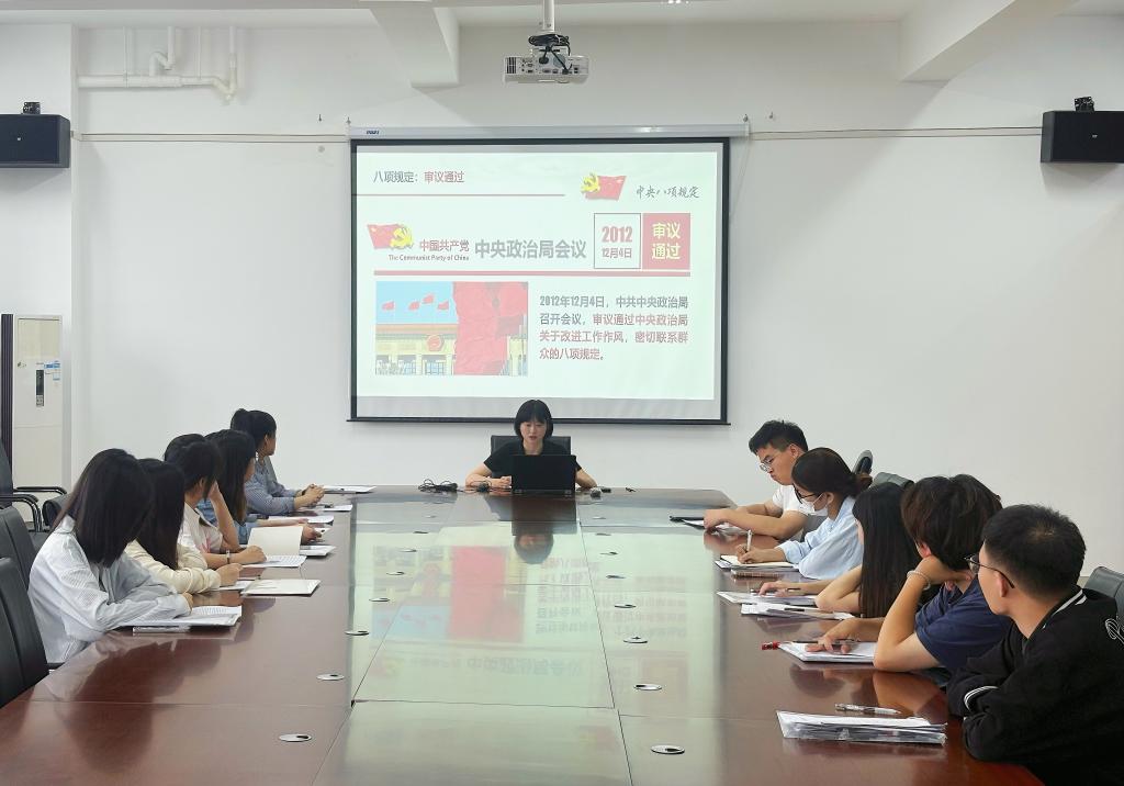 课上,支部书记郑彦汝从中央八项规定出台的历史背景、主要内容和现实意义等方面进行了系统阐释。她指出,中央八项规定不仅是改进工作作风的具体行为规范,更是新时代推进党的自我革命的重要抓手。通过详细解读中央八项规定涵盖的调查研究、会议活动、文件简报、出访活动、警卫工作、新闻报道、文稿发表和勤俭节约等八个方面内容,引导学生党员深刻领会其核心要义。她在课上强调,中央八项规定精神是新时代加强党的作风建设的重要遵循,是党员必须严格遵守的行为准则,希望学生党员们要做到:一是要加强理论学习,深刻领会中央八项规定精神,不断提高政治觉悟和纪律意识,将作风建设的理论知识融入到日常学习中,做到学思用贯通、知信行统一;二是要严格自律,在学业和生活中发挥模范带头作用,以实际行动展现党员的先进性。坚决杜绝学业上的不正之风,如考试作弊、作业抄袭等,同时在生活里保持勤俭节约,反对铺张浪费,不盲目攀比,倡导绿色低碳生活;三是要积极参与社会实践和志愿服务活动,在服务群众中锤炼党性,增强责任感和使命感,主动深入基层,关注社会热点和群众需求,通过社会实践了解国情民情,增强对党的路线方针政策的理解和认同。