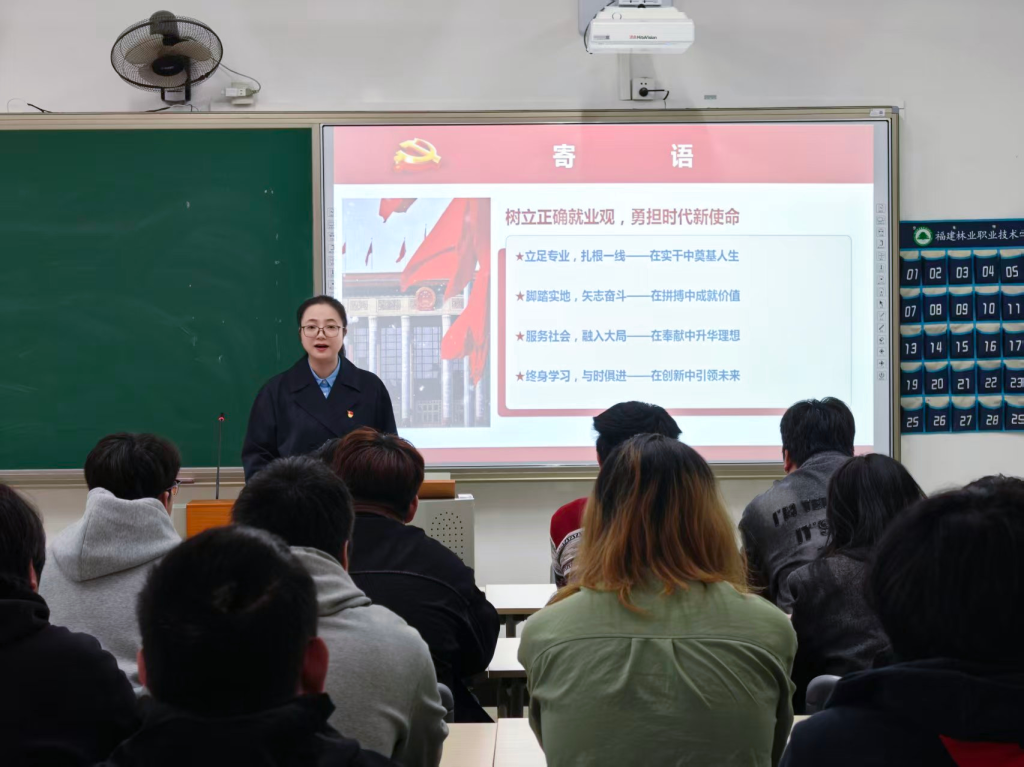 课上,陈莉老师结合全会精神,与同学们就如何“树立正确就业观,勇担时代新使命”进行了深入交流。她勉励同学们,要将全会精神内化于心、外化于行,要立足专业,扎根一线,在实干中奠基人生;要脚踏实地,矢志奋斗,在拼搏中成就价值;要服务社会,融入大局,在奉献中升华理想;要终身学习,与时俱进,在创新中引领未来。